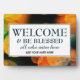 Modern Bokeh BE BLESSED Welcome plaque. Stylish WELCOME plaque with the wording WELCOME & BE BLESSED ALL WHO ENTER HERE (EXCEPT TRESPASSERS). The background is an orange bokeh pattern. All text is CUSTOMIZABLE so you can amend the wording to suit your needs.