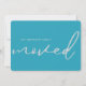 So you've moved: announce your new home address with this bold moving announcement card in a bold and fresh blue, featuring modern calligraphy script. Customize it with your own text on the back. Background colour is customizeable too. There's to new beginnings and making memories in your new home!