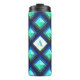 Modern Bold Blue Green Geometric Diamonds & Name Thermal Tumbler