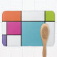 Inspired by the iconic Tableau painting by Mondrian, this modern bathmat is a celebration of bold geometric forms and fresh, bright colours of blue, pink, orange and green.