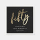 Modern minimalist 50th birthday party paper napkins features stylish faux gold foil number handwritten script fifty and your details in classic serif font on black background color, simple and elegant, great surprise adult milestone birthday invitation for men and women. The black background color can be changed to any color of your choice.