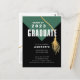 Modern & bold Class of 2022 graduation party invitation featuring a green grad cap with a gold tassel set on a black background. Visit our shop to view this design in a variety of school colours.