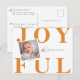 Modern Bold JOYFUL Christmas Photo Orange Holiday Postcard