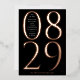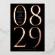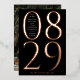 This modern and bold save the date card features the date of your wedding in extra large numerals in real rose gold foil type on a black background. The couple's names and the wedding location are displayed inside of the zero for months January through September and to the left of the numeral one for months October through December. This chic save the date card will make a statement and set the tone for your wedding. The back of the save the date has space for a full page photograph.