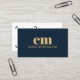 Elegant customizable business card template with navy blue background and bold golden brown monogram.