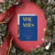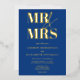 Chic gold bold modern Mr and Mrs typography blue wedding with real gold foil , perfect for elegant, luxurious wedding, fall and winter wedding themes., upload 1 photo