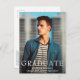 Modern boy graduation announcement postcard featuring a simple and masculine design with "Graduate" in large bold typography along with the graduate's name, year and school name over your favourite full bleed vertical photo. The backside has your personal message / party invitation and return address in a navy blue over a white background.