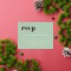 Modern Sage Green and REAL ROSE GOLD Rsvp Cards, featuring chic bold RSVP in oversized real rose gold foil bold retro lettering over a simple yet elegant sage green background. Mix and match colours with the invitations and other stationery according to your wedding colour template