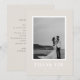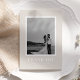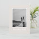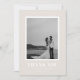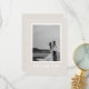 This modern wedding thank you card features a soft beige background with a framed photo and bold white typography. The contemporary design highlights a clean and minimal aesthetic, making it the perfect choice for couples who love modern style. On the back, a pre-written thank you note is included, which you can keep or replace with your own words.