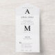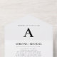 Your guests will love this modern all in one wedding invitation. Bold typography in black on a white background. This includes the RSVP, your guests will remove and mail back to you. To personalize add your names and wedding details.
