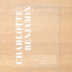 Make a bold statement with this modern minimalist white acrylic wedding invitation. Featuring vertical typography in clean white lettering, this unique design offers a sleek and sophisticated look that’s perfect for contemporary weddings. The acrylic material adds an elegant touch while providing a durable and stylish presentation. Perfect for couples who appreciate minimalistic aesthetics with a bold twist, this invitation will impress your guests and set the tone for your special day.