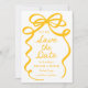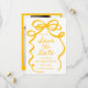 Brighten your guests' day with this modern yellow bow wedding save the date card. Designed with a bold, hand-drawn yellow bow that frames the layout against a white background, this cheerful and elegant design brings a joyful touch to your wedding announcement. “Save the Date” is featured in a handwritten yellow script, with space to personalize your names, wedding date, and location. The back showcases a vertical engagement photo along with your wedding website so guests can easily access more details. Ideal for spring, summer, or destination weddings, this vibrant design sets a warm and happy tone for your celebration.
