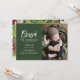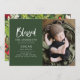 Modern minimal botanical blessed Christmas photo birth announcement card.