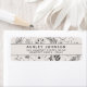 This modern botanical blush and black return address label features a beautiful hand drawn black floral design over a blush background, and overlaid with a black bordered blush rectangle featuring your name and return address.