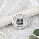 The button features a crisp white center framed by a bold black circular border and a delicate background of black and white floral line art. At the center is a large, scannable QR code that can be easily linked to a Venmo, CashApp, or PayPal account, allowing friends, family, and wedding guests to send a digital drink token directly to the groom.