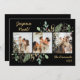 This simple watercolor botanical greenery and berries photo holiday card with 3 of your favourite photos in the centre and the words "Joyeux Noel" in a modern script font in gold above the photo and your family name and the year in the same script font in gold below the photo is perfect for sending to your friends and family. It's minimal and classic design is sure to bring smiles to the faces of every recipient. The back is a matching black.
