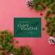 Celebrate the Festival of Lights with this sophisticated emerald teal design featuring shimmering gold-toned botanical illustrations and elegant hand-lettering. The rich jewel-tone palette and modern minimalist layout create a truly luxurious and memorable greeting for your family and friends
