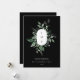 Elegant watercolor botanical greenery frame, holiday card. Design features, modern framed "JOY", template text lines for your short message, name and year. Solid black colour backgrounds.