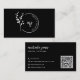 This elegant and modern business card design features a minimalist black background with a sophisticated white botanical logo, creating a sleek and professional look. The delicate floral illustration combined with a stylish circular monogram adds a refined and artistic touch, making it perfect for entrepreneurs, creatives, and business professionals seeking a polished brand identity. The back of the card showcases clear and legible contact details in a stylish script and serif font combination, complemented by a scannable QR code for seamless digital networking. Ideal for small business owners, designers, consultants, and freelancers, this chic and timeless design exudes professionalism with a touch of personal flair.