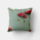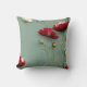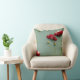 Elevate your living space with this stunning example of modern botanical art. This throw pillow features an elegant, airy composition of deep red blossoms and slender wildflowers that seem to grow organically from the corners and edges. Set against a sophisticated, muted sage green background, the design celebrates the beauty of negative space, creating a serene and high-end aesthetic.