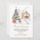Elegant Modern Botanical 'Merry Christmas' Script Non-Photo Holiday Cards. These festive Christmas cards showcase a stunning watercolor design featuring a serene snowy winter scene with a charming village house, a beautifully decorated Christmas tree, and gifts in the foreground. The 'Merry Christmas' greeting is gracefully hand-lettered in gold calligraphy, adding a sophisticated touch to the clean white background. The reverse side is adorned with a delicate gold snowflake pattern against a crisp dusty green backdrop, enhancing the festive feel. Perfect for customization, these personalized holiday cards are an elegant way to send warm wishes to family and friends this Christmas season.