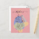 This Mother’s Day postcard features a soft pink background that creates a warm and inviting atmosphere, perfect for conveying heartfelt wishes on Mother’s Day. At the top of the postcard, “HAPPY MOTHER’S DAY” is elegantly inscribed, adding a personal touch to this customizable postcard. This heartfelt message is the first thing that catches the eye, setting the tone for the rest of the design. The centerpiece of the postcard is a hand-drawn floral illustration. The flowers and leaves, outlined in black, are set against abstract pastel-coloured shapes in yellow and green hues, adding depth and interest to the overall design. The combination of the soft pastel colour palette, the elegant typography, and the hand-drawn floral illustration gives this postcard a delicate and feminine style. It’s an ideal choice for anyone looking to convey affectionate wishes on Mother’s Day in a way that’s both stylish and heartfelt.