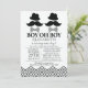 Cute moustache bash baby shower invitation for twins! Perfect for a "Oh Boy", "Little Man" or "Moustache" themed baby shower for twin boys! Our cute and modern moustache invitation features a top hat, moustache, & bow tie set on a crisp white background with a black chevron border. Flip the invite over to view a matching back for a special extra touch.