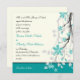Modern branch with turquoise flowers personalized wedding invitation showcasing beautiful turquoise flowers and buds.