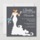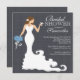 Stylish modern brunette bride wedding shower invitation features a chic modern bride toasting with a wine glass while holding a beautiful bouquet of dark blue wedding flowers set on a printed on paper popular black linen background with stand out white text. Our modern bride bridal shower invitation is perfect for a popular wine bridal shower celebration. Visit our shop to view this beautiful bridal shower invitation in a large selection of floral bouquet colours and different bride variations.