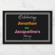 Cute Modern Personalized Wedding Mini Sparkling Wwine Bottle Labels. Simple modern black background with fancy decorative colourful script lettering with fine double white border. Click "personalize this template" to customize mini sparkling wine bottle labels with bride and groom names and date of marriage quickly and easily. 30 Day Money Back Guarantee.