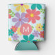 Modern Bright Cheerful Flower Pattern Monogrammed Can Cooler