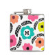 Modern Bright Flowers and Black Leaf Monogram Hip Flask