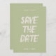This modern & retro funky minimalist Wedding Save The Date Template is great for you. If you are looking for a pretty, elegant and easy to customize Wedding Save The Date Template .A very elegant simple and chic green wedding save the date. Which features brush stroke white milky cream save the date bold typography on plain bright funky pale sage green background. . Grab this stylish wedding save the date and make your invites truly engaged.