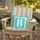 Modern Bright Turquoise White Monogram Outdoor Pillow