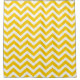 Modern and colourful shower curtain featuring chevron stripes of yellow and white.