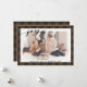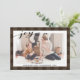 Modern Brown Buffalo Plaid Elegant Script JOY Simple Holiday Card. Send customizable and personalized holiday greetings to friends, colleagues and family in simple, chic, elegant and modern photo design festive, natural minimalist style cards! A beautiful calligraphy of " joy " frames your photo in front. Below the photo features your custom greeting message from your family name in modern typography. Reverse to reveal a beautiful dark brown burlap buffalo plaid texture background.