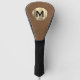 Modern Brown Leather Brushed Gold Monogram Golf Head Cover