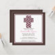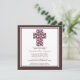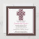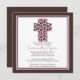 Popular square Contemporary brown cross with pink flowers baptism invitation or christening invitation for a baby girl baptism.