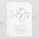 Modern Brown Script We Do Simple Wedding Invitation. Available digitally and printed. A simple elegant design with light brown writing on white. Stylish set script We Do takes centre stage at the top.The rest of the text you can easily personalise. Text and background colours can be changed if you wish to better suit your wedding theme via the customise further option. A QR code is on the back for the convenience of your guests to reply online via your website. Your QR code will automatically be generated to replace the sample code when you enter your website URL into the template.