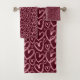 Modern deep burgundy and pink brush heart bath towel set. Perfect for Valentine's day decor!
