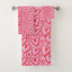 Modern pink and red brush heart bath towel set. Perfect for Valentine's day decor!