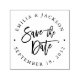 Finish your save the date envelopes, postcards and DIY goodies with this chic rubber stamp featuring your names and wedding date encircling "save the date" in hand lettered brush typography.