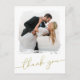 Modern Brush Photo Gold Script Wedding Thank You Postcard