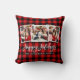 Modern Brush Script 3 Photo Happy Holidays Red Plaid Pillow