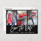 Modern Brush Script 3 Photo Save The Date Blk Postcard