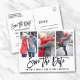 Modern Brush Script 3 Photo Save The Date Wht Postcard