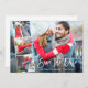 Modern Brush Script Save The Date Engagement Announcement Couple 4 Photo Card