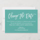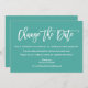 Modern Brush Script Change The Date Wedding Postponed Card Teal