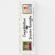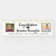 Gold confetti and CONGRATULATIONS (graduate's name) in a brush script font in black against an editable white background you can change to coordinate with school colours or your graduation party colour scheme or decor. Honour and celebrate the graduate and welcome party guests with this banner sign featuring two photos of the graduate for a young man or woman. Personalize it with their name, school and graduation year or whatever text you desire. PHOTO TIP: For fastest/best results, choose a photo with the subject in the middle and/or pre-crop it to a square shape BEFORE uploading and it will fill in the photo space provided perfectly. Contact the designer if you’d like this design modified, on another product or would like coordinating items