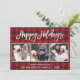 Modern Brush Script Happy Holidays 3 Photo Plaid Holiday Card